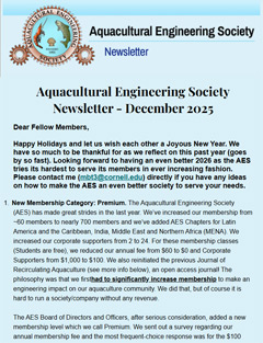 Build your knowledge and career by become part of an extensive network of engineers, scientists, and researchers from around the world that have a shared professional interest in aquaculture engineering. You will receive notices about upcoming conferences, events, and training opportunities, and quarterly e-publication providing information about the latest industry news and AES activities. Furthermore, you may purchase an online or printed subscription to the Aquacultural Engineering journal, which is the official journal of the society at a significantly reduced rate.